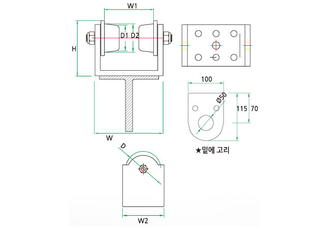 철, 올스텐 고리형 2륜 트로리(I빔용) HC-IO, SIO |